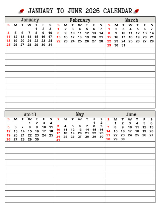 2025 Calendar January To June January to June 2025 Printable Calendar: As the new year begins, Pope Francis will be the oldest reigning pope since the early 1900s and the third oldest in history. . I flip through the pages of each new calendar in a quick check of their chronology, pleasantly assured that July is once again slated to follow June. I also enjoy the sheer blankness of each .